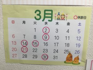 2022.02.19 / 最終更新日 : 2025.08.03 nakanishident-blog インフォメーション 今日も寒いですね 皆さま、おはようございます(^-^) 新居浜の中西歯科矯正歯科です🦷 3月の診療日をお知らせいたします。 3月は水曜日と祝日以外に休診日があります。 よろしくお願いします。