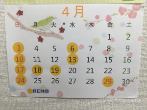 さて、4月の診療日のお知らせです♪