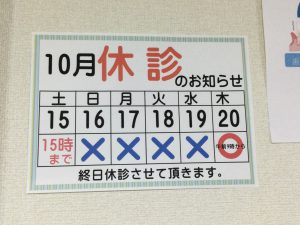 2022.10.15 / 最終更新日 : 2025.08.04 nakanishident-blog インフォメーション 休診のお知らせ おはようございます😃 新居浜の中西歯科矯正歯科です🦷 本日午後3時で診療を終了致します。 その後から 少し長めのお休みをいただきます。 ご迷惑をお掛け致しますが、 よろしくお願い致します。