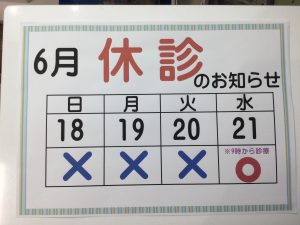 2023.05.30 / 最終更新日 : 2025.08.04 nakanishident-blog インフォメーション 6月診療日のお知らせ こんばんは😃 新居浜の中西歯科矯正歯科です🦷 6月の診療日のお知らせです(о´∀`о)
