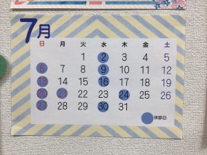 2025.06.27 / 最終更新日 : 2025.08.04 nakanishident-blog インフォメーション 7月の休診日のお知らせ こんにちは🌞 新居浜の中西歯科矯正歯科です🦷 暑くなってきましたね🥵お身体気をつけてお過ごしください。 さて、7月の休診日のお知らせです。 よろしくお願いいたします🙇