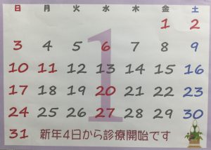 さて、1月のお休みのお知らせです♪