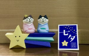 流れ星に乗った織姫ニャンコと彦星ニャンコが