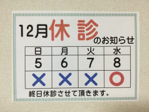 12月の休診日のお知らせ